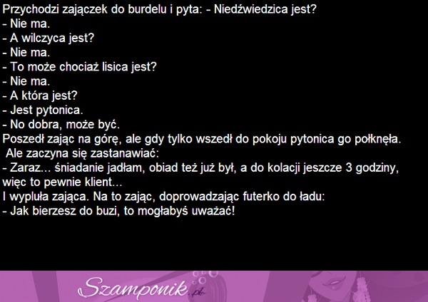 Przychodzi zajączek do burdelu i pyta...