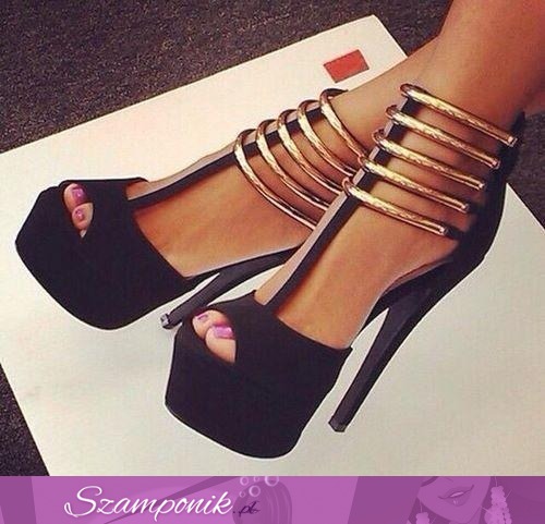 Eleganckie złoto czarne sandałki