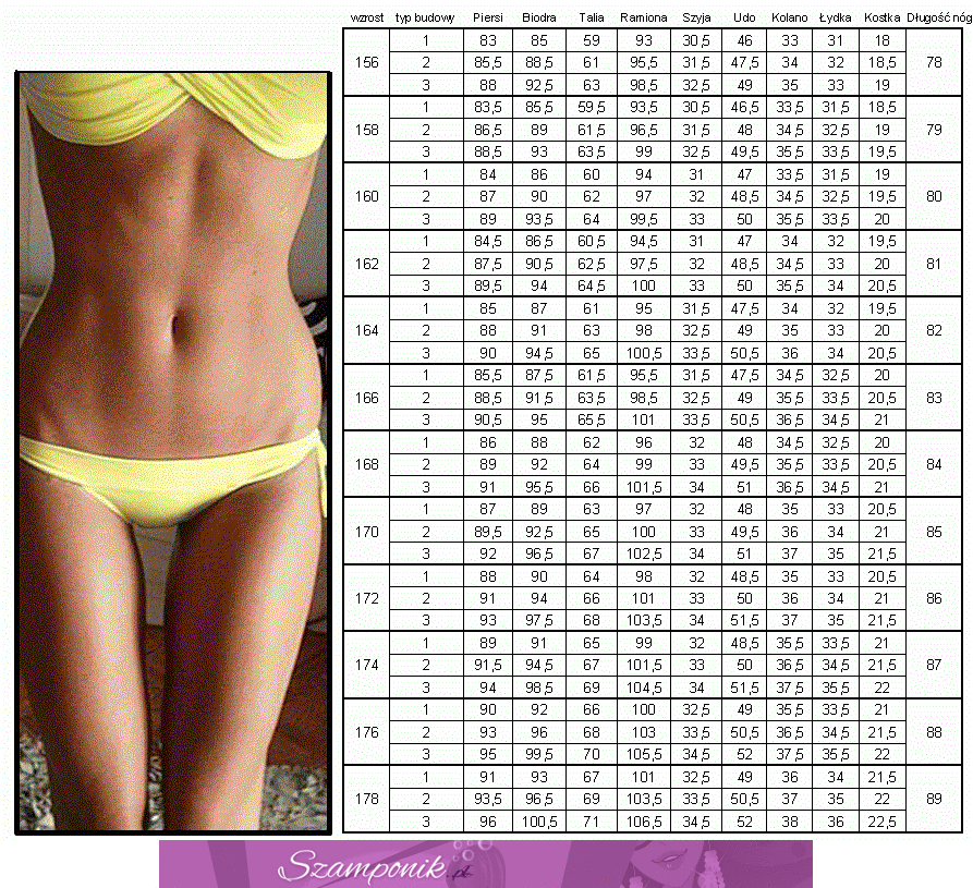 Tabela - IDEALNE WYMIARY CIAŁA!