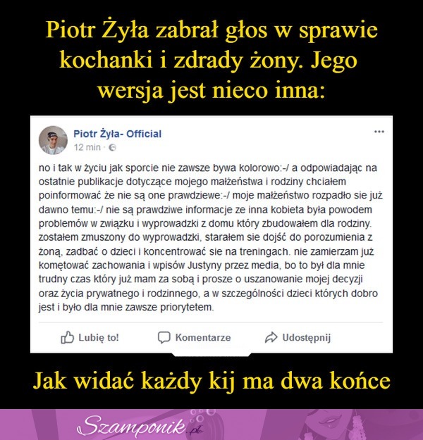 Piotr Żyła zabrał głos w sprawie kochanki i zdrady żony. Jego wersja jest nieco inna...