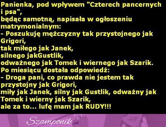 Kawał o czterech pancernych, psu i kobiecie, haha! :D
